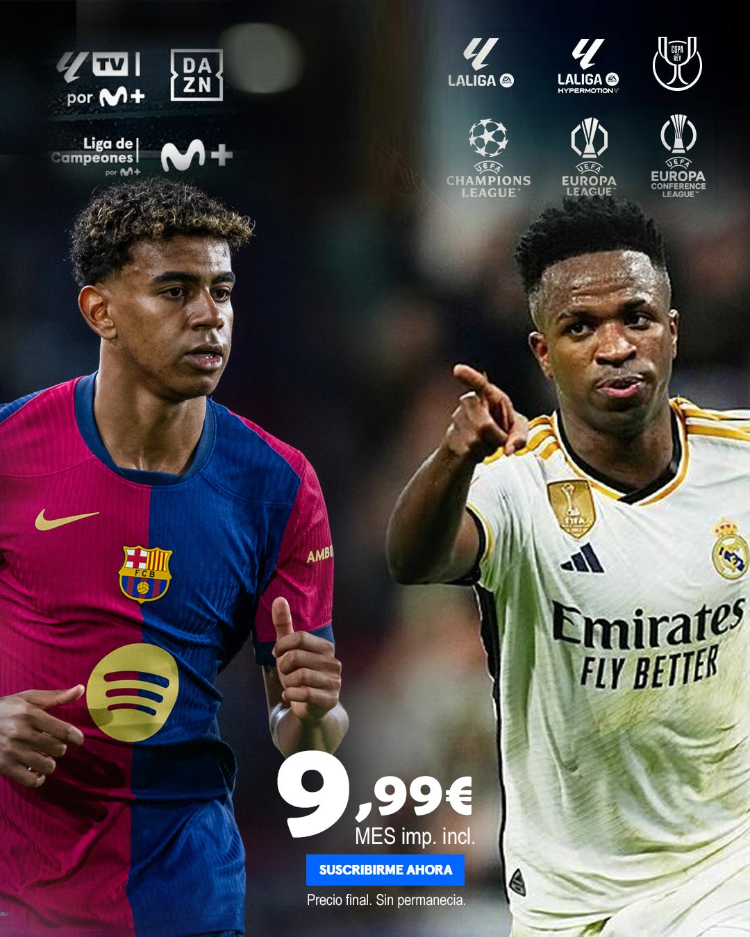 Todo la Liga, Champions League, UEFA League, Euroliga de Baloncesto, ATP, Torneo 6 Naciones, Series, Películas, Documentales, … ahora desde 9,99€/mes precio definitivo.